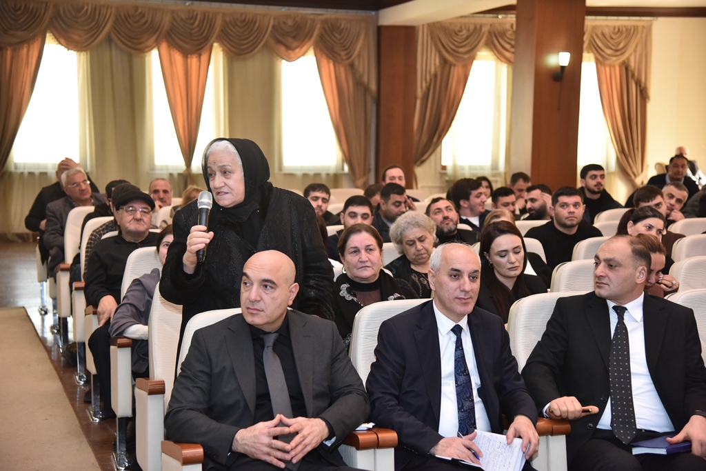 Tədbiri giriş sözü ilə açan Rayon İcra Hakimiyyətinin başçısı Tahir Budaqov uzun illər işğal altında olan doğma Qarabağ torpaqlarının işğaldan azad edilməsinin şanlı tarixini xatırladaraq bildirdi ki, Vətən müharibəsi günlərində nümayiş etdirilən sarsılmaz döyüş ruhu, yüksək peşəkarlıq və qətiyyət Azərbaycan ordusunun qüdrətini, eləcə də xalq-ordu birliyinin sarsılmazlığını bütün dünyaya nümayiş etdirdi. Bu möhtəşəm Qələbə Ali Baş Komandan İlham Əliyevin müdrik, uzaqgörən və qətiyyətli siyasəti, xalqımızın həmrəyliyi və Şanlı Azərbaycan ordusunun misilsiz şücaəti sayəsində əldə olundu. Tarixi qələbənin təməlinin Ümummilli lider Heydər Əliyev tərəfindən qoyulduğunu xüsusi vurğulayan natiq qeyd etdi ki, şəhid ailələrinin və müharibə əlillərinin sosial müdafiəsinin gücləndirilməsi dövlət siyasətində xüsusi yer tutur. Bu istiqamətdə həyata keçirilən ardıcıl və məqsədyönlü tədbirlər şəhid ailələrinin və müharibə iştirakçılarının rifah halının yaxşılaşdırılmasına, sosial təminatlarının daha da möhkəmləndirilməsinə xidmət edir. Onların mənzil-məişət şəraitinin yaxşılaşdırılması, məşğulluq imkanlarının genişləndirilməsi, tibbi və psixoloji dəstəyin artırılması bu siyasətin əsas tərkib hissələrindəndir. Qeyd olundu ki, Ümummilli lider Heydər Əliyevin şah əsəri olan müasir Azərbaycan Respublikası bu gün müzəffər Ali Baş Komandan İlham Əliyevin uzaqgörən və praqmatik idarəçiliyi nəticəsində ardıcıl və hərtərəfli inkişaf yolu keçməkdədir.