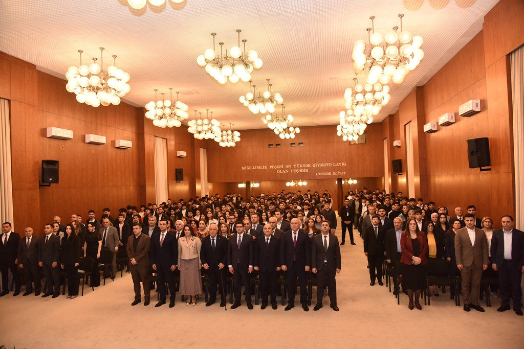 Tədbir iştiakçıları əvvəlcə Ulu Öndər Heydər Əliyevin universitetdə ucaldılan büstü önünə əklil qoyub xatirəsini dərin ehtiramla yad ediblər.