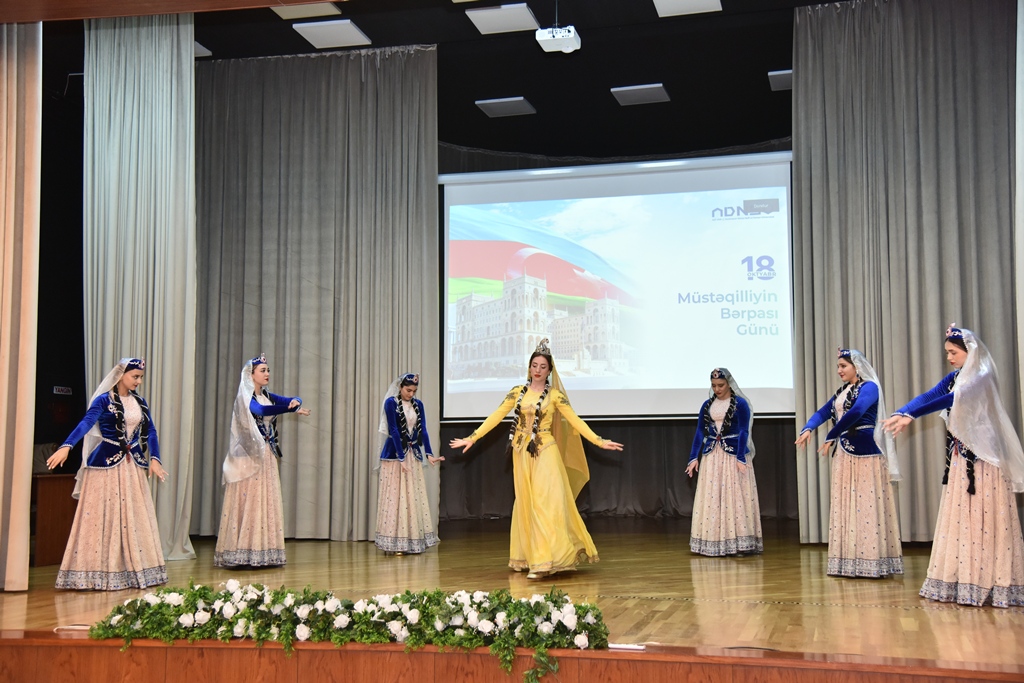 Tədbirdə çıxış edən ADNSU-nun rektoru, dosent Rüfət Əzizov xalqımızın azadlıq və suverenlik iradəsinin simvolu olan 18 Oktyabr – Müstəqilliyin Bərpası Gününün Azərbaycan xalqının tarixində ən qürurlu və yadda qalan səhifələrdən biri olduğunu qeyd edərək müstəqilliyin tarixi və mənəvi əhəmiyyətindən danışıb. Dövlət müstəqilliyimizin sarsılmaz kökləri olduğunu qeyd edən rektor Rüfət Əzizov Azərbaycanın bugünkü inkişaf yolunun Ulu Öndərin Heydər Əliyevin müəyyən etdiyi siyasi xəttin Prezident İlham Əliyev tərəfindən yüksək siyasi bacarıqla davam etdirilməsinin nəticəsi olduğunu vurğulayıb. Bu gün müstəqilliyimizin qorunması və möhkəmləndirilməsində hər bir vətəndaşın, xüsusilə də gənc nəslin böyük məsuliyyət daşıdığını deyən rektor Rüfət Əzizov ADNSU-da gənclərin milli ruhda, elmi biliklərə və müasir dünyagörüşünə malik mütəxəssislər kimi yetişməsinə böyük önəm verildiyini bildirib və hər kəsi Müstəqilliyin Bərpası Günü münasibətilə təbrik edib.