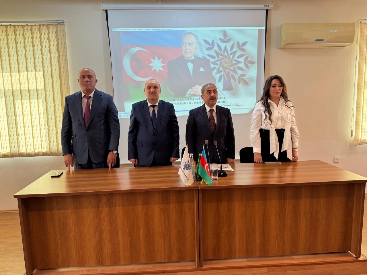 Azərbaycan xalqının Ümummilli Lideri Heydər Əliyevin və Torpaqlarımızın suverenliyi və ərazi bütövlüyü uğrunda canlarından keçən Şəhidlərimizin əziz xatirəsi 1 dəqiqəlik sükutla yad edilib, Dövlət himni səsləndirilib.