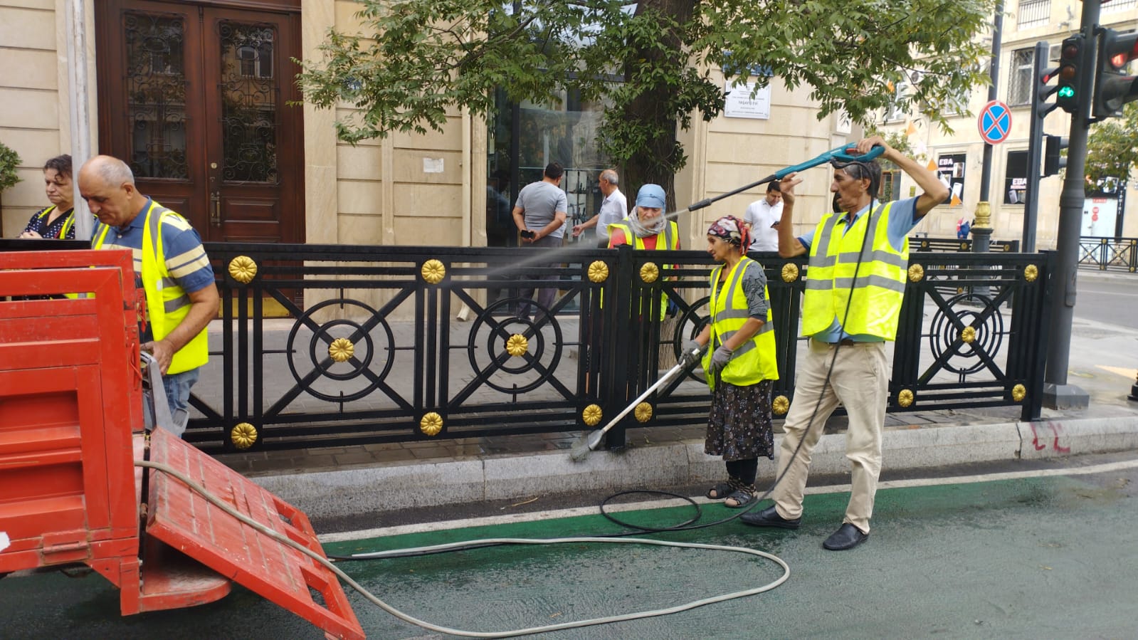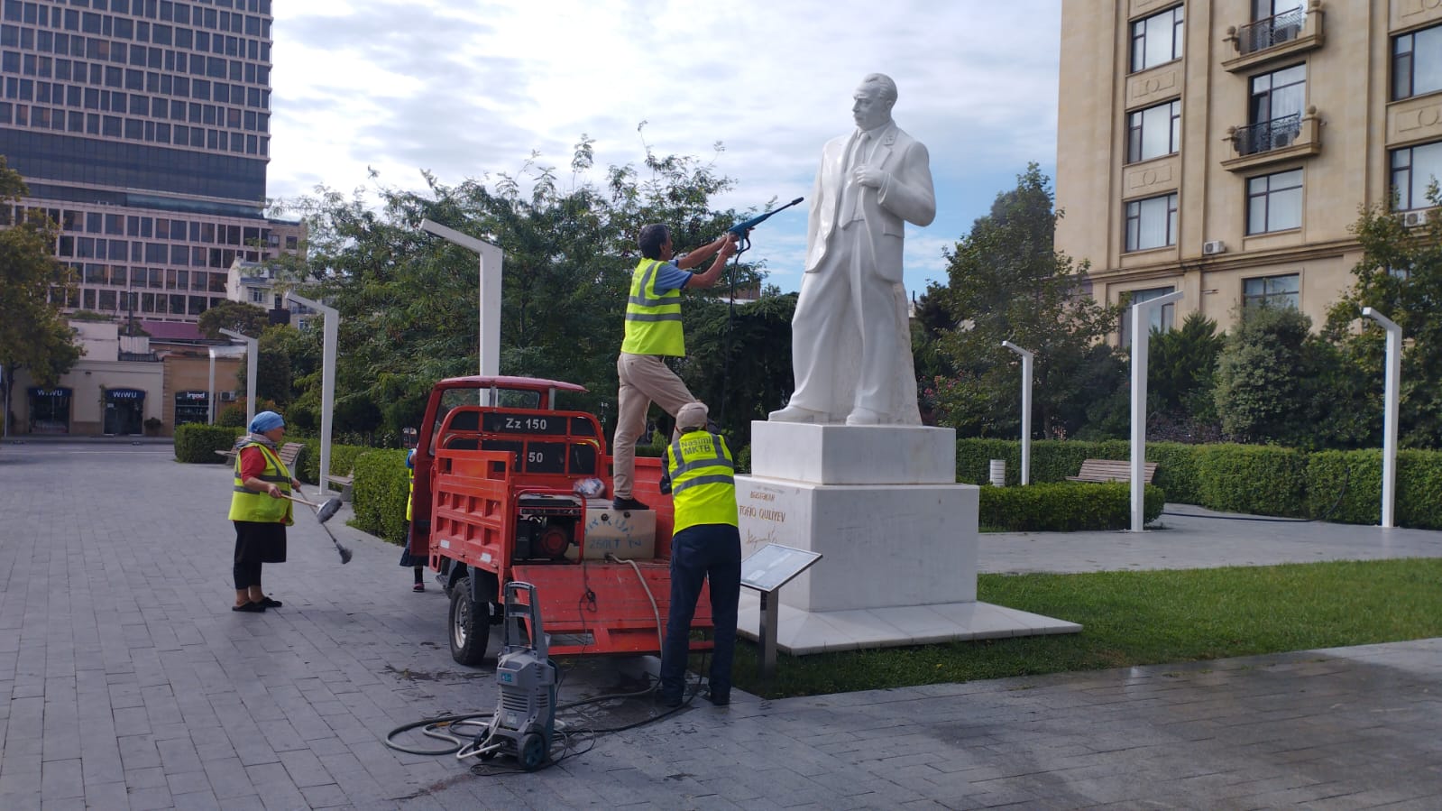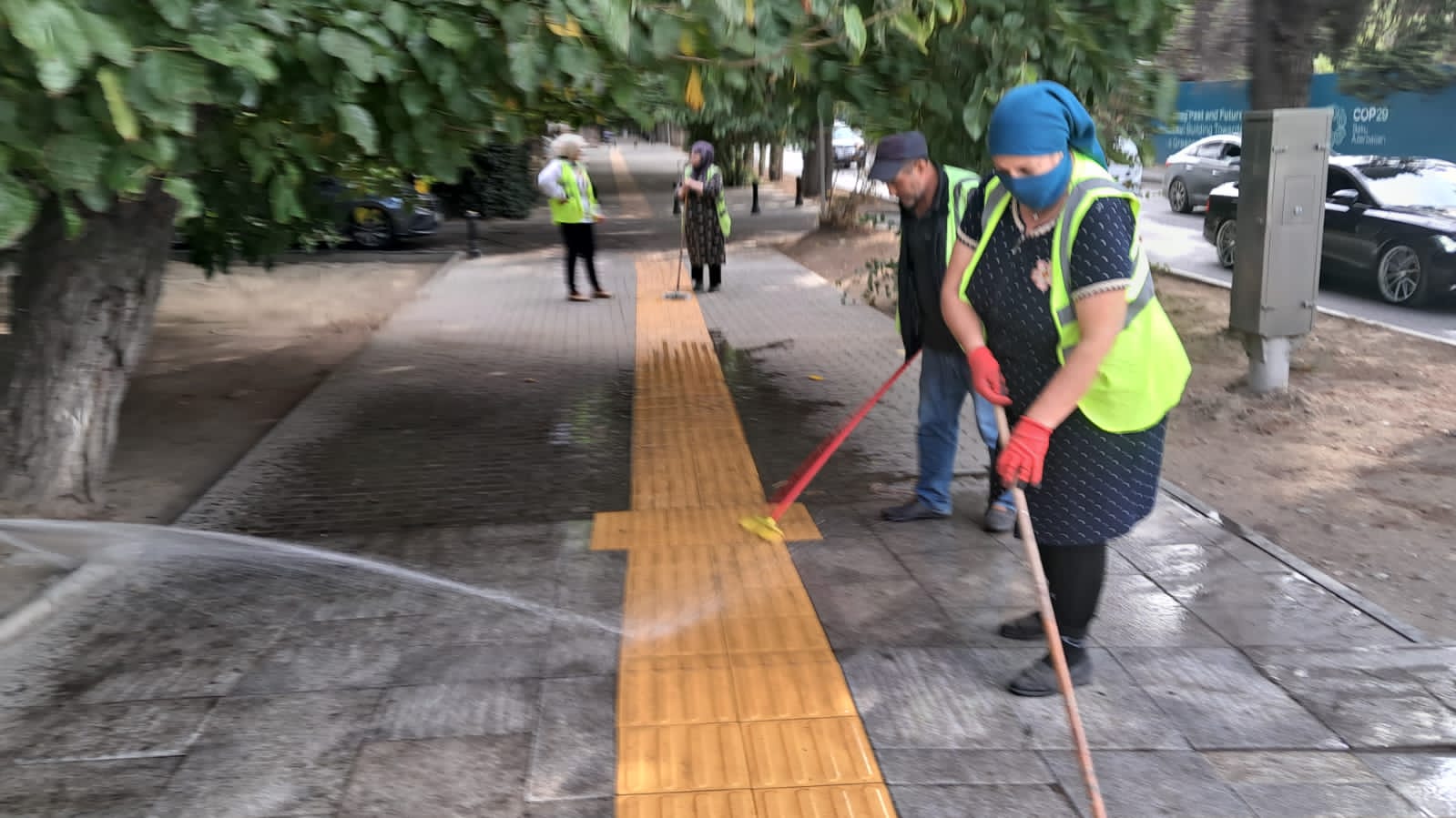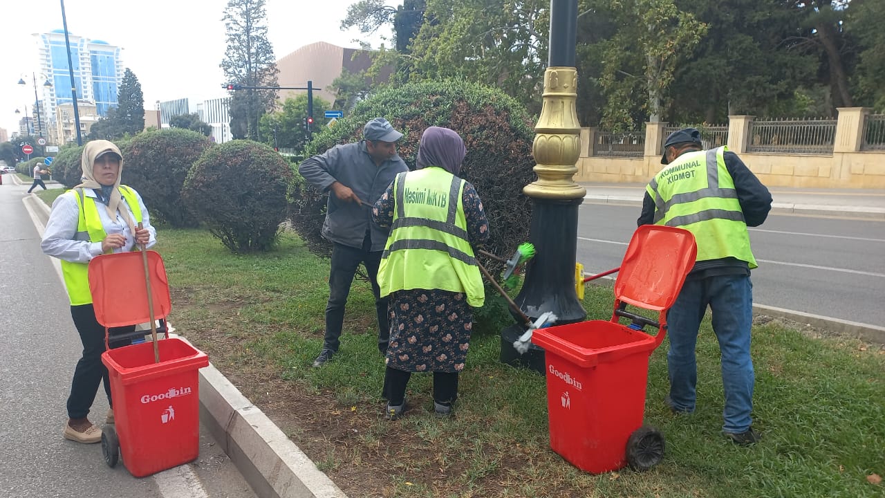 Bu məqsədlə rayonun idarə, müəssisə və təşkilatlarının əməkdaşlarının iştirakı ilə keçirilən növbəti iməclikdə prospekt və küçələrdə səki kənarları, bardürlər, vitrinlər, yol kənarındakı məhəccərlər, məişət tullantıları konteynerlərinin ətrafı yuyularaq təmizlənmişdir, mövcud yaşıllıqlara aqrotexniki qulluq göstərilmişdir.