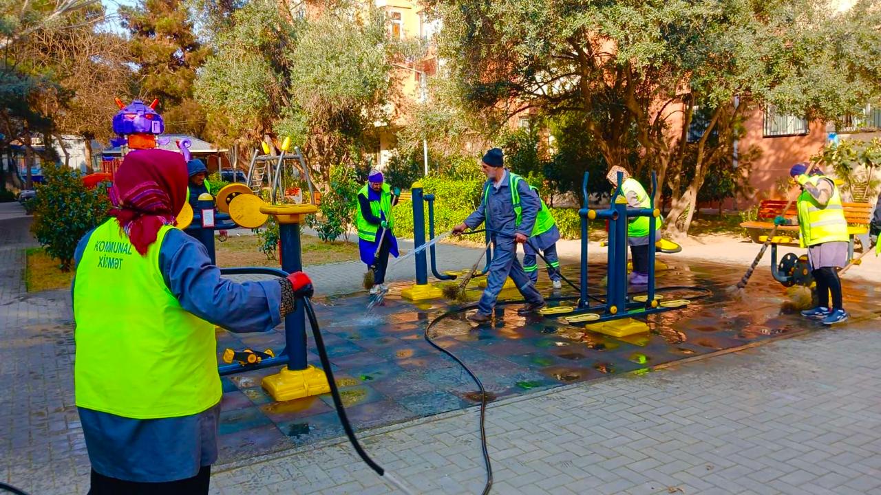 İməcilik zamanı prospekt və küçələr, səki kənarları, bardürlər, işıq dirəkləri, yol kənarındakı məhəccərlər, vitrinlər, məişət tullantıları konteynerlərinin ətrafı yuyularaq təmizlənib, mövcud yaşıllıqlara qulluq göstərilib, rəngbərəng mövsümi güllər əkilib.